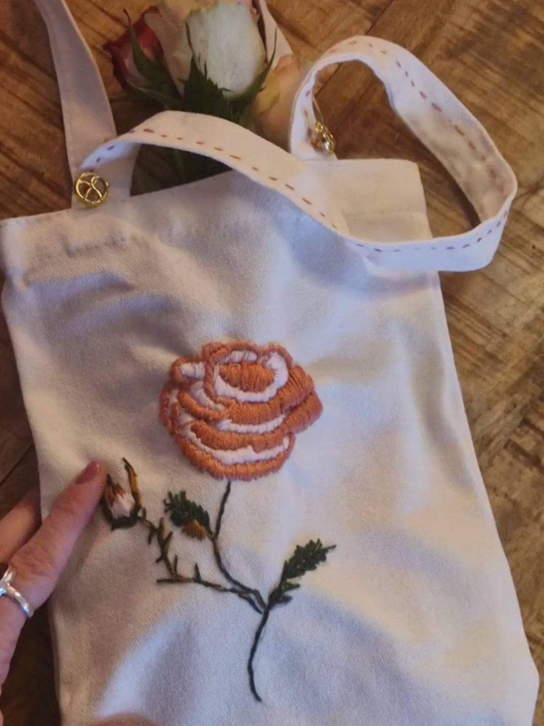 The Pink Centifolia Rose, stitched by hand, represents harmony and prosperity — a quiet wish woven into fabric, meant to be carried close or gifted with intention. Designed to hold books, small bouquets, or personal essentials, this piece moves between utility and ritual, celebrating slowness, craftsmanship, and meaning.